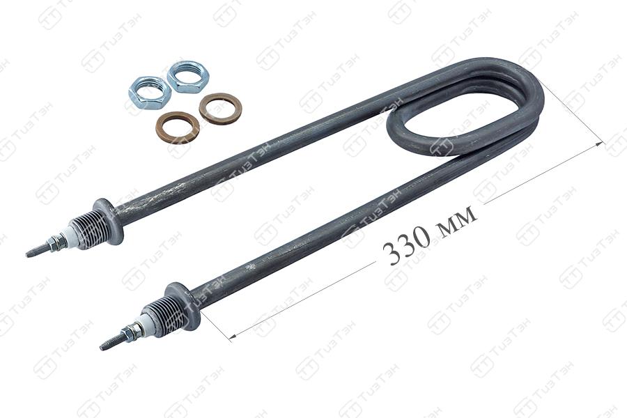 Первый вариант представляет собой трубку из нержавейки диаметром 8.5, 10 или 13 мм. Конфигурация трубки сделана таким образом, что она напоминает подкову или "скрепку" - данная конфигурация позволяет в меньшие габаритные размеры вместить большую длинну трубы, а соответсвенно и мощность. На концах трубки герметично приварены крепежные элементы - штуцера.